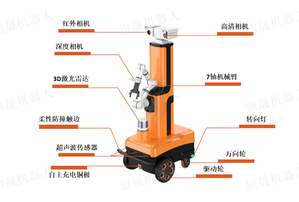 在巡檢領域,傳統(tǒng)輪式/軌道巡檢機器人功能局限于簡單數(shù)據(jù)采集,且受環(huán)境制約嚴重,如遇障礙便難以為繼。而復合巡檢操作機器人強勢崛起,集多樣檢測與操作能力于一身,能靈活應對復雜地形,精準完成巡檢與應急處置,開啟智能巡檢新篇章,正重塑行業(yè)格局。 A1M-311-A復合型操作巡檢機器人 一、產(chǎn)品介紹 旗晟智能復合型操作巡檢機器人是一款專為工業(yè)領域設計的多功能機器人。它采用了先進的兩驅兩轉向差速底盤,結合3D激光雷達與RTK的Slam核心算法,能夠在大面積且環(huán)境易變化的場景中實現(xiàn)精準導航和自主避障。同時,上層搭載的7軸機械臂、深度相機及一體化雙目云臺,賦予了機器人強大的場景巡檢和設備操作
